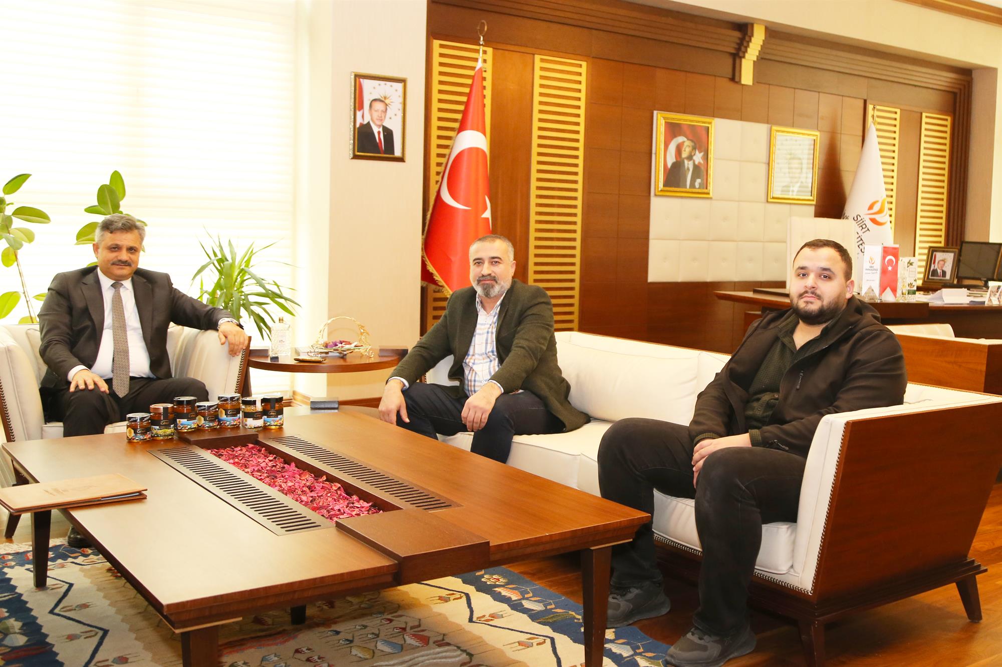 Rektörlük makamında gerçekleştirilen görüşmede; 2025 ve 2026 yıllarında Fransa’da düzenlenen Paris Uluslararası Bal Ödülleri Yarışması’nda Siirt Cahter Organik Balı ile sırasıyla Altın ve Platinum Kalite Ödülleri kazanan Recep Ertaş ile Üniversitemiz ARIMER’i ve Teknoloji Transfer Ofisi Uygulama ve Araştırma Merkezi iş birliğinde geliştirilebilecek inovatif ürünler üzerine görüş alışverişinde bulunularak yapılabilecek ürünler hakkında değerlendirmeler yapıldı.