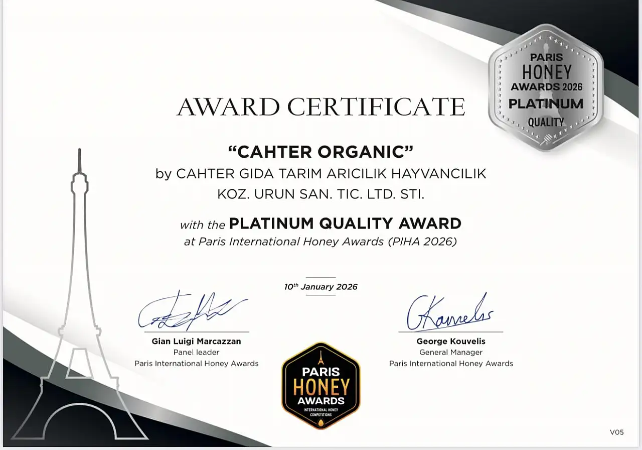 Siirt Cahter Organik Balı’na Paris’ten Platinum Quality Award (En Üst Kalite) Ödülü